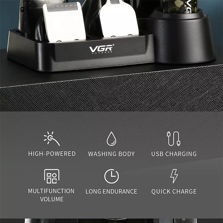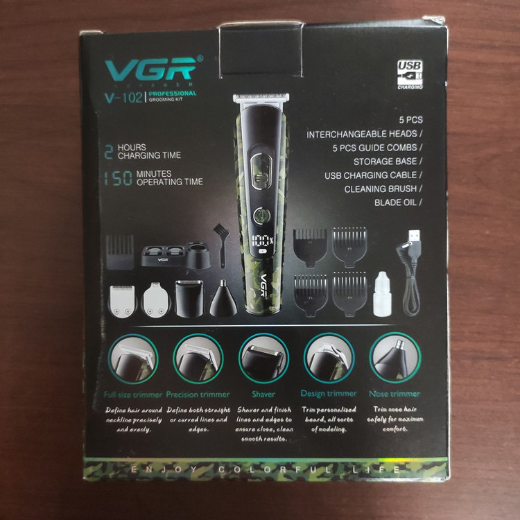 ست ماشین اصلاح موی صورت و بدن وی جی ار مدل« V-102» دارای 5 عملکرد مختلف با سری شامل سری شیور، خط زن، حجم زن، موزن و سری کوچک است که شمارا از خرید سایر ابزار اصلاح بینیاز میسازد. تیغههایی این ماشین اصلاح از جنس استیل ضدزنگ و خود تیز شونده هستند که قابلیت اصلاح از 0 تا 12 میلیمتر را دارد. این دستگاه بهوسیله کابل USB به مدت 2 ساعت شارژ شده تا زمان کار دو ساعت و نیم در اختیار شما قرار گیرد. همچنین از ویژگی شارژ سریع نیز برخوردار است. طراحی جذاب و ارگونومیک، وزن 260 گرمی و استند همراه دستگاه استفاده از این ماشین اصلاح را آسان و لذتبخش تبدیل کرده است.