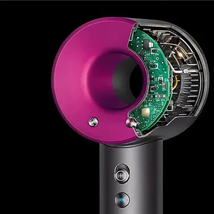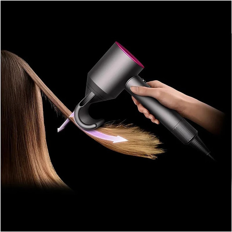 سشوار فوق حرفه ای دایسون سوپر سونیک HD08، یک سشوار کاملا حرفه ای می باشد. موتور دیجیتال قدرتمند و کوچک دایسون V9 تا 110000 دور در دقیقه چرخش می کند. این موتور با فناوری Air Multiplier™ ترکیب شده و جریان هوای کنترل شده با فشار بالا و سرعت زیاد را برای خشک کردن سریع و حالت دهی دقیق تولید می کند. برخلاف اکثر سشوار ها، سشوار Dyson Supersonic™ HD08 در هر ثانیه بیش از 40 بار دمای هوا را اندازه گیری می کند و گرما را تنظیم می کند. این کار از آسیب شدید گرما جلوگیری کرده و به محافظت از درخشش موهای شما کمک می کند. موتور این سشوار در قسمت دسته آن تعبیه گردیده که چرخش خود را به پره های آن در قسمت فوقانی سشوار انتقال میدهد. این موتور کوچک که در دسته آن قرار دارد قدرت بسیار بالایی را دارد و موها را به راحتی حالت میدهد و آنها را خشک میکند. سرعت خشک کردن موها با این سشوار فوق العاده بالاست. علاوه بر خشک کردن موها می توان برای حالت دهی موها نیز از این سشوار استفاده نمود. خشک کردن و حالت دهی بدون استفاده از حرارت از ویژگی هایی است که در این سشوار وجود دارد.
